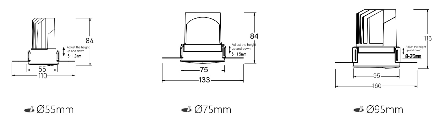 The fixed wall washer spotlight Specially designed free-form reflective cup with anti-glare cover, accurate light path,active anti-glare,with higher light efficiency.·Super turnable white perfarmance.·Wall washing with no dark area. The splicing of multiple lamps has a better wallwashing effect. Two color anti-glare covers available:chrome +electroplated black.·High temperature resistant material,reflective cup temperature 140℃. ·Multiple forms are available,which perfectly match various application scenarios.The basic model comes in white and black colors. Customized color finishing, power changes are possible depending on the request and the quantity. Simple installation ceiling recessed with spring, Famous brand LED chips CRI90+ 3steps. Smart lighting, achieved CASAMBI I DALI DT8 dimmable. Easy lighting demand, for a wide scala of projects, from hotels, retail , commercial areas and much more. The spotlight is presented to its customers as a clean and non-dazzling product.