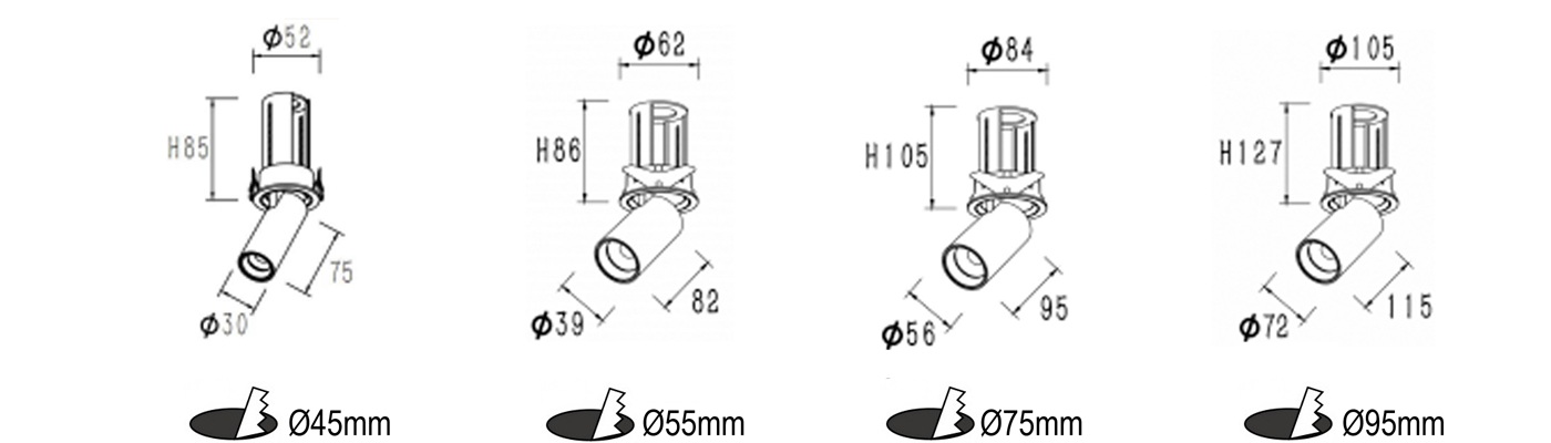 Aluminium material and powder coating. Remote LED driver version. High level of visual comfort. They comprise a LED light module, a metal baffle and a metal mounting frame. 90° vertical tilting, 360° horizontal rotation and pull-out.Easy installations. it facilitates the installation by giving the opportunity to the installer to place the mounting frame in advance. No need to worry for the lighting modules in further finishing of the room, as the spotlight modules can be pushed into the frame afterwards, and easy to take it off the mounting frame. The possibility to take the spotlight out from its mounting frame, adjustable and the right angled incliation make this product to be highly flexible and easy to handle. The spotlight offer homogeneous and uniform light distribution.Specialized optics and optical filters can be ordered. Dimmable. 5years warranty. Customized color finishing, power changes are possible depending on the request and the quantity. The new creating that meets the needs of your residential and commercial projects.