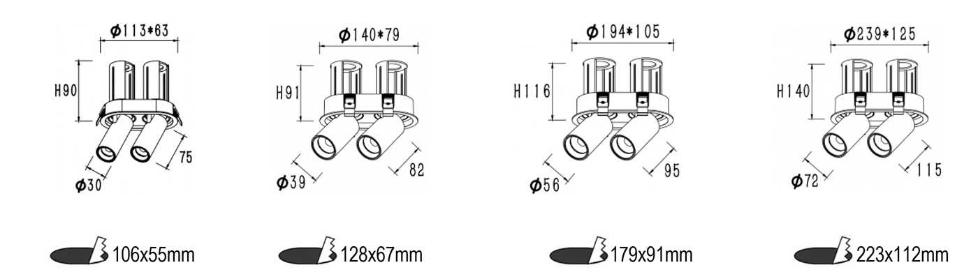 Aluminium material and powder coating. Remote LED driver version. High level of visual comfort. They comprise a LED light module, a metal baffle and a metal mounting frame. 90° vertical tilting, 360° horizontal rotation and pull-out.Easy installations. it facilitates the installation by giving the opportunity to the installer to place the mounting frame in advance. No need to worry for the lighting modules in further finishing of the room, as the spotlight modules can be pushed into the frame afterwards, and easy to take it off the mounting frame. The possibility to take the spotlight out from its mounting frame, adjustable and the right angled incliation make this product to be highly flexible and easy to handle. The spotlight offer homogeneous and uniform light distribution.Specialized optics and optical filters can be ordered. Dimmable. 5years warranty. Customized color finishing, power changes are possible depending on the request and the quantity. The new creating that meets the needs of your residential and commercial projects.