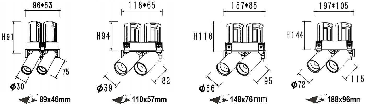 Aluminium material and powder coating. Remote LED driver version. High level of visual comfort. They comprise a LED light module, a metal baffle and a metal mounting frame. 90° vertical tilting, 360° horizontal rotation and pull-out.Easy installations. it facilitates the installation by giving the opportunity to the installer to place the mounting frame in advance. No need to worry for the lighting modules in further finishing of the room, as the spotlight modules can be pushed into the frame afterwards, and easy to take it off the mounting frame. The possibility to take the spotlight out from its mounting frame, adjustable and the right angled incliation make this product to be highly flexible and easy to handle. The spotlight offer homogeneous and uniform light distribution.Specialized optics and optical filters can be ordered. Dimmable. 5years warranty. Customized color finishing, power changes are possible depending on the request and the quantity. The new creating that meets the needs of your residential and commercial projects.