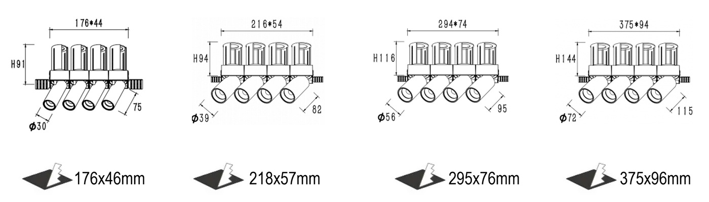 Aluminium material and powder coating. Remote LED driver version. High level of visual comfort. They comprise a LED light module, a metal baffle and a metal mounting frame. 90° vertical tilting, 360° horizontal rotation and pull-out.Easy installations. it facilitates the installation by giving the opportunity to the installer to place the mounting frame in advance. No need to worry for the lighting modules in further finishing of the room, as the spotlight modules can be pushed into the frame afterwards, and easy to take it off the mounting frame. The possibility to take the spotlight out from its mounting frame, adjustable and the right angled incliation make this product to be highly flexible and easy to handle. The spotlight offer homogeneous and uniform light distribution.Specialized optics and optical filters can be ordered. Dimmable. 5years warranty. Customized color finishing, power changes are possible depending on the request and the quantity. The new creating that meets the needs of your residential and commercial projects.