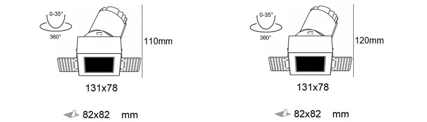 Aluminium material and powder coating. Remote LED driver version. Dark light technology,High level of visual comfort. They comprise a LED light module, a plastic material secondary reflector and a metal mounting frame. the reflector is available in multiple color finishing. The lighting fixture matched 30° adjustable and 355° rotation, Easy installations. it facilitates the installation by giving the opportunity to the installer to place the mounting frame in advance. No need to worry for the lighting modules in further finishing of the room, as the spotlight modules can be clicked into the mounting frame afterwards, and easy to take it off the mounting frame. The possibility to take the spotlight out from its mounting frame, adjustable and the right angled incliation make this product to be highly flexible and easy to handle. The spotlight offer homogeneous and uniform light distribution, available for four different output beams 15/24/36/50°. Specialized optics and optical filters can be ordered. Dimmable. 5years warranty. Customized color finishing, power changes are possible depending on the request and the quantity. The new creating that meets the needs of your residential and commercial projects.