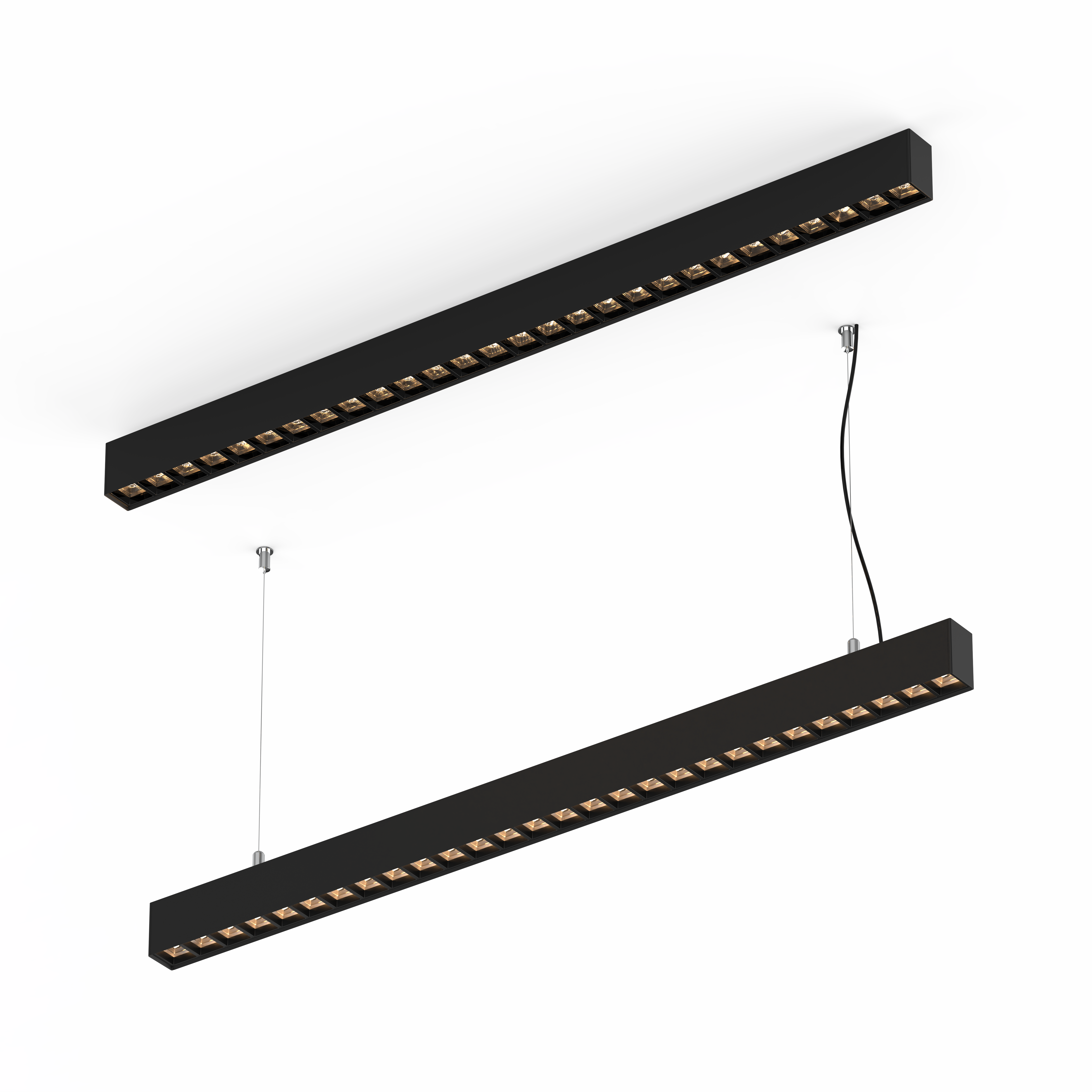 What a beautiful light, Feeling good, below a comfortable light that fosters concentration and social relations, is a clear need. It emits both general lighting and controlled lighting, with UGR<19 and low luminance, Opti diamond models providing a truly unique perceptive performance. thanks to its innovative Opti diamond. It meets the strictest standards in terms of visual comfort for offices. This ensures a comfortable working environment for the eyes, reducing glare and eyestrain, which promotes a more productive and healthy working environment. Aluminium extrusion lighting fixture -Built in LED Driver -economical version- Excellent cooling system. Uniform distribution. The basic model comes in matt white or matt black color finishing, and lighting fixture in length of L1110mm, Ceiling Suspended I Ceiling Mounted installation. Customized color finishing are possible depending on the request and the quantity to match the specific look and feel of your design. Standard length of cable L1500mm for ceiling suspended installation. Customized Up and Down light. Die-cast aluminium sealing caps. The rounded corner refines the outline and for a more fluid, soft and reassuring appearance recalling the harmony of natural elements. the light distribution is also key to the concept, low glare downlight with sharp cut-off optics that is gentler on the eyes at night. Energy savings of more than 90% high efficiency , 120lm/W, Thanks to a (highly!) efficient light that adapts to your actual visual needs. Smart lighting, Furthermore, this can be increased even further by using control systems, DALI I TRIAC I 0-10V I CASAMBI. Tunable White dimmable .