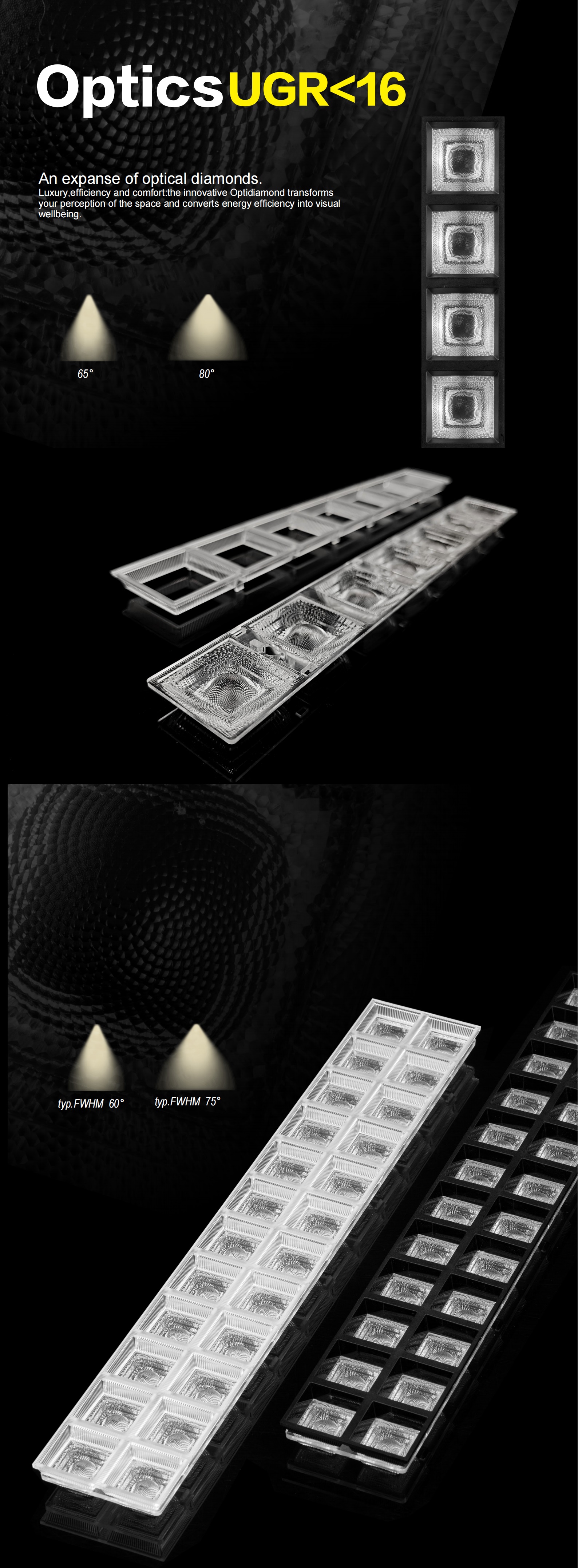 What a beautiful light, Feeling good, below a comfortable light that fosters concentration and social relations, is a clear need. It emits both general lighting and controlled lighting, with UGR<19 and low luminance, Opti diamond models providing a truly unique perceptive performance. thanks to its innovative Opti diamond. It meets the strictest standards in terms of visual comfort for offices. This ensures a comfortable working environment for the eyes, reducing glare and eyestrain, which promotes a more productive and healthy working environment. Aluminium extrusion lighting fixture -Built in LED Driver -economical version- Excellent cooling system. Uniform distribution. The basic model comes in matt white or matt black color finishing, and lighting fixture in length of L1110mm, Ceiling Suspended I Ceiling Mounted installation. Customized color finishing and power are possible depending on the request and the quantity to match the specific look and feel of your design. Standard length of cable L1500mm for ceiling suspended installation. Die-cast aluminium sealing caps. The rounded corner refines the outline and for a more fluid, soft and reassuring appearance recalling the harmony of natural elements. the light distribution is also key to the concept, low glare downlight with sharp cut-off optics that is gentler on the eyes at night. Energy savings of more than 90% high efficiency , 120lm/W, Thanks to a (highly!) efficient light that adapts to your actual visual needs. Smart lighting, Furthermore, this can be increased even further by using control systems, DALI I TRIAC I 0-10V I CASAMBI. Tunable White dimmable .