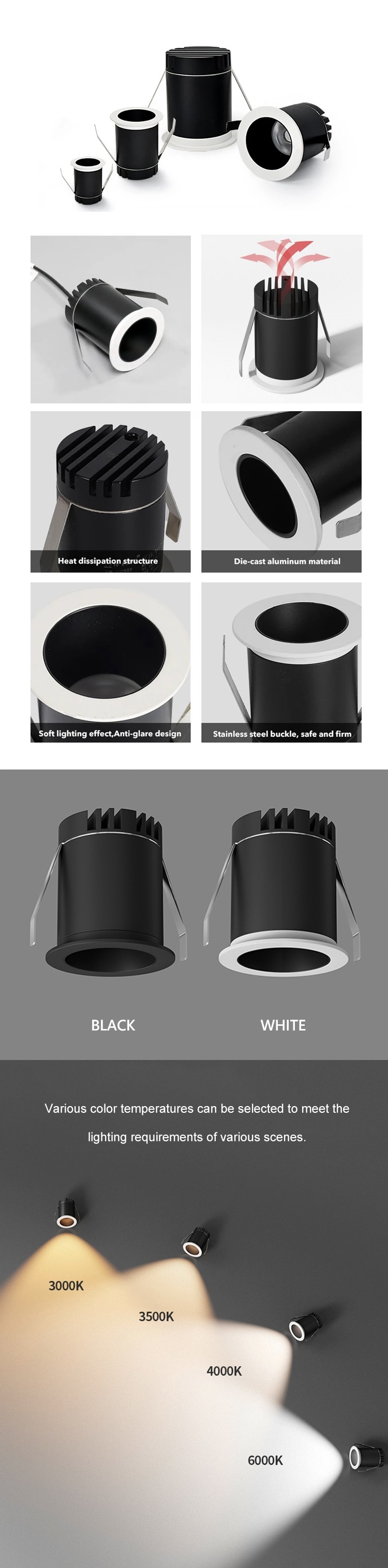 Fixed spotlight with trim, visual comfort low glare optic with deeply recessed light source. Uniform distribution, A few different optics available. Small dimensions. easy to highlight the beauty. Create your customized light atmosphere ,The variety of lighting elements allows to create different light compositions and scenarios in order to obtain customized lighting effects. White OR Black color finishing as standard. -- Customized color finishing, power changes are possible depending on the request and the quantity. matching the specific look and feel of your design. cutout:Ø60mm I 24° 36°