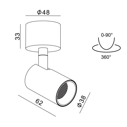 Aluminium material and powder coating. Built-in LED driver version. High level of visual comfort. 90°adjustable 355°rotation.