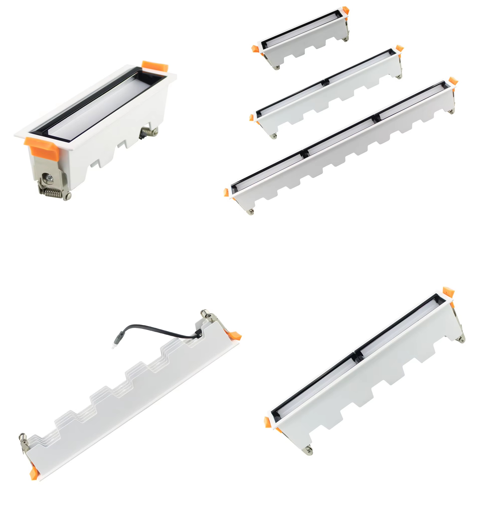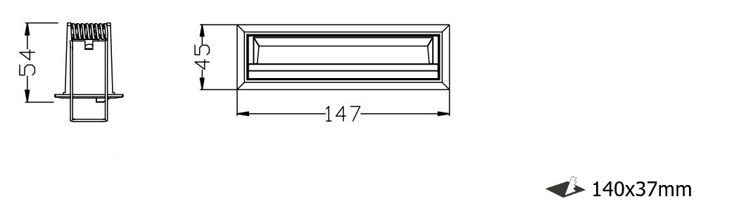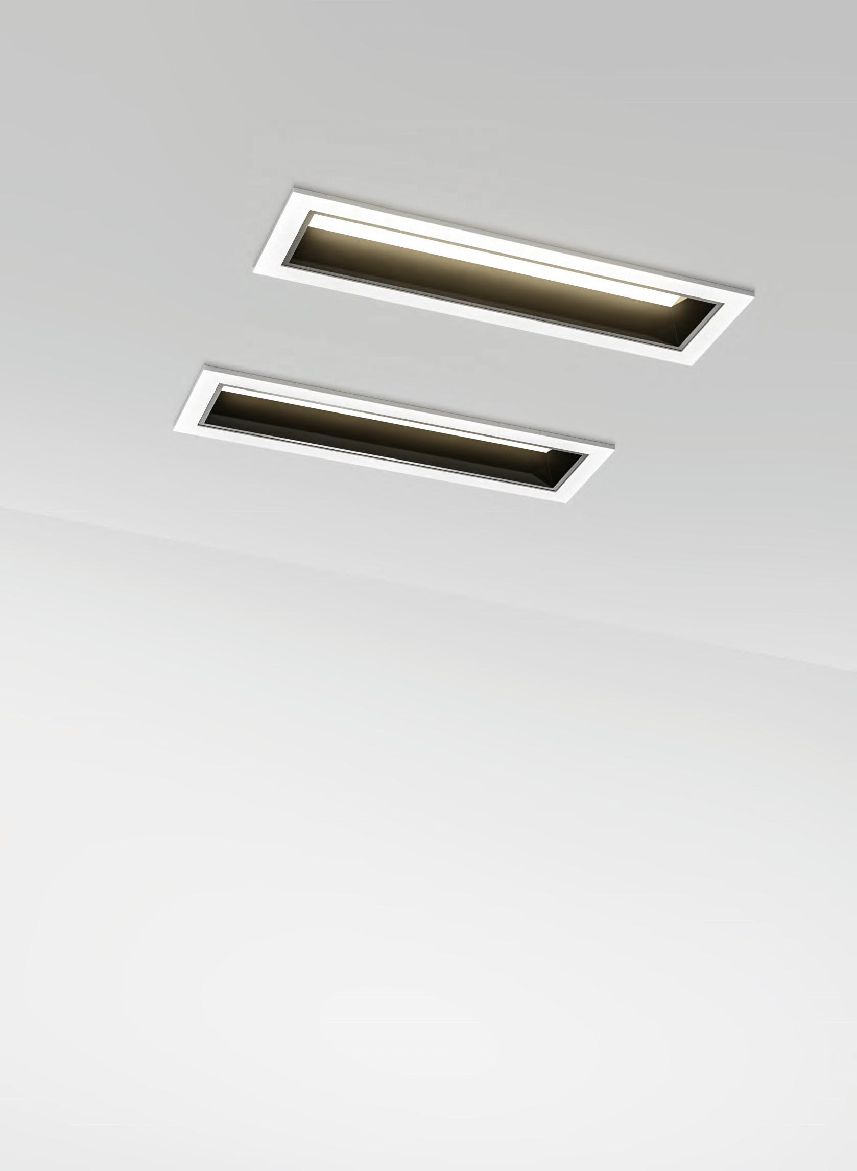Upper wall washer. the lighting fixture is aluminium die-casting module and a ABS baffle . Ceiling , wall recessed installation. Wall washer, to illuminate the wall, so that the wall looks clean, clear, uniform and comfortable, non- dazzling product. The biggest feature of this light is the whole wall wash, with our wall washing light , you can evenly illuminate the whole wall without dark area. UGR<19. 5LEDs, 15V, CRI90 2W/LED White I Black color finishing as standard. Customized color finishing, power changes are possible depending on the request and the quantity. dimmable