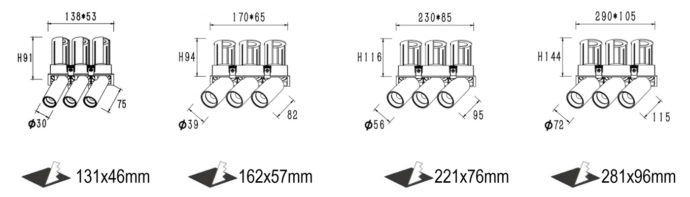 Aluminium material and powder coating. Remote LED driver version. High level of visual comfort. They comprise a LED light module, a metal baffle and a metal mounting frame. 90° vertical tilting, 360° horizontal rotation and pull-out.Easy installations. it facilitates the installation by giving the opportunity to the installer to place the mounting frame in advance. No need to worry for the lighting modules in further finishing of the room, as the spotlight modules can be pushed into the frame afterwards, and easy to take it off the mounting frame. The possibility to take the spotlight out from its mounting frame, adjustable and the right angled incliation make this product to be highly flexible and easy to handle. The spotlight offer homogeneous and uniform light distribution.Specialized optics and optical filters can be ordered. Dimmable. 5years warranty. Customized color finishing, power changes are possible depending on the request and the quantity. The new creating that meets the needs of your residential and commercial projects.
